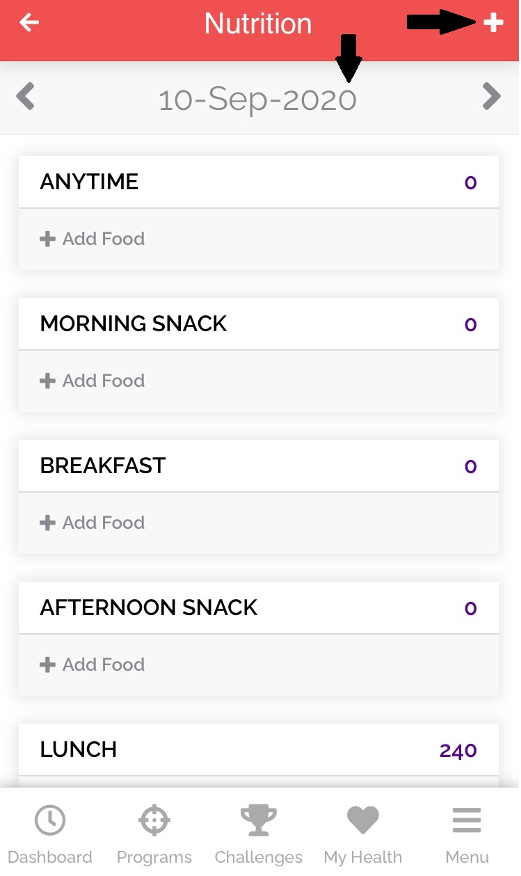 Note: If you want to make any changes to the added nutrition record, delete the existing food record from the Nutrition page, and add a new record with the correct food log details.